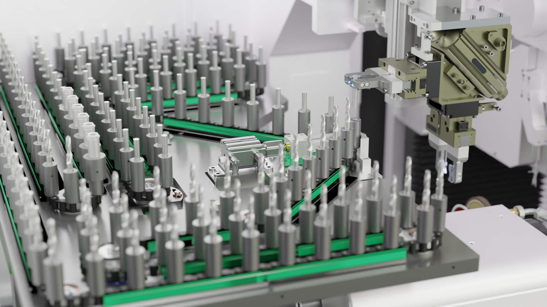 • Handlingsystem unabhängig von den Maschinenachsen Schnellere Wechselzeiten durch Doppelgreifer