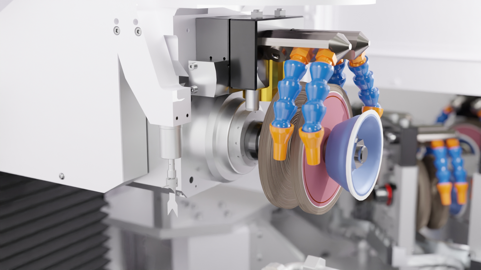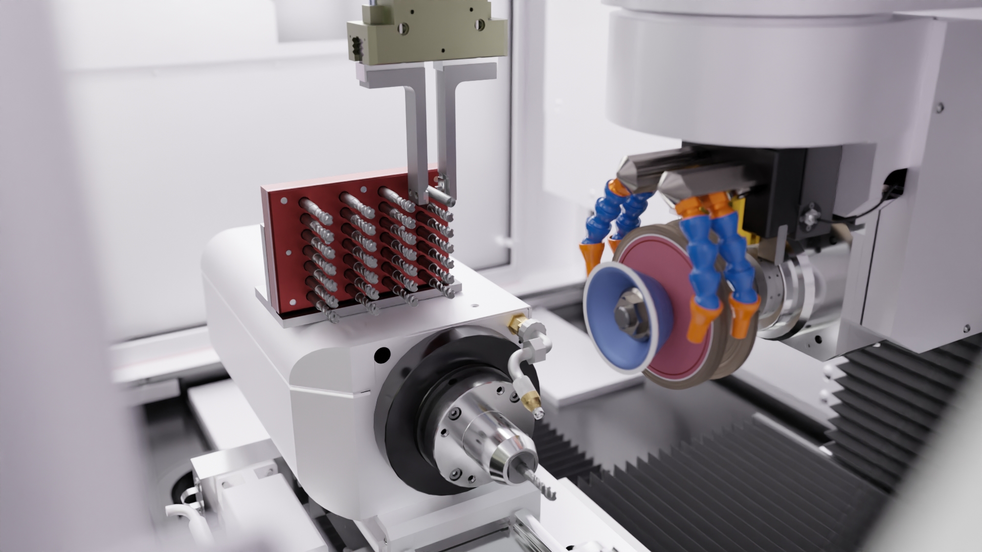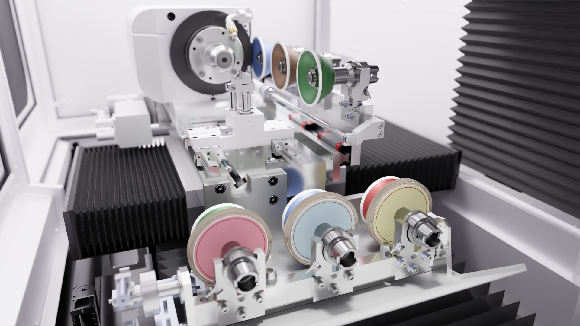 • Frei bestückbarer Schleifscheibenwechsler